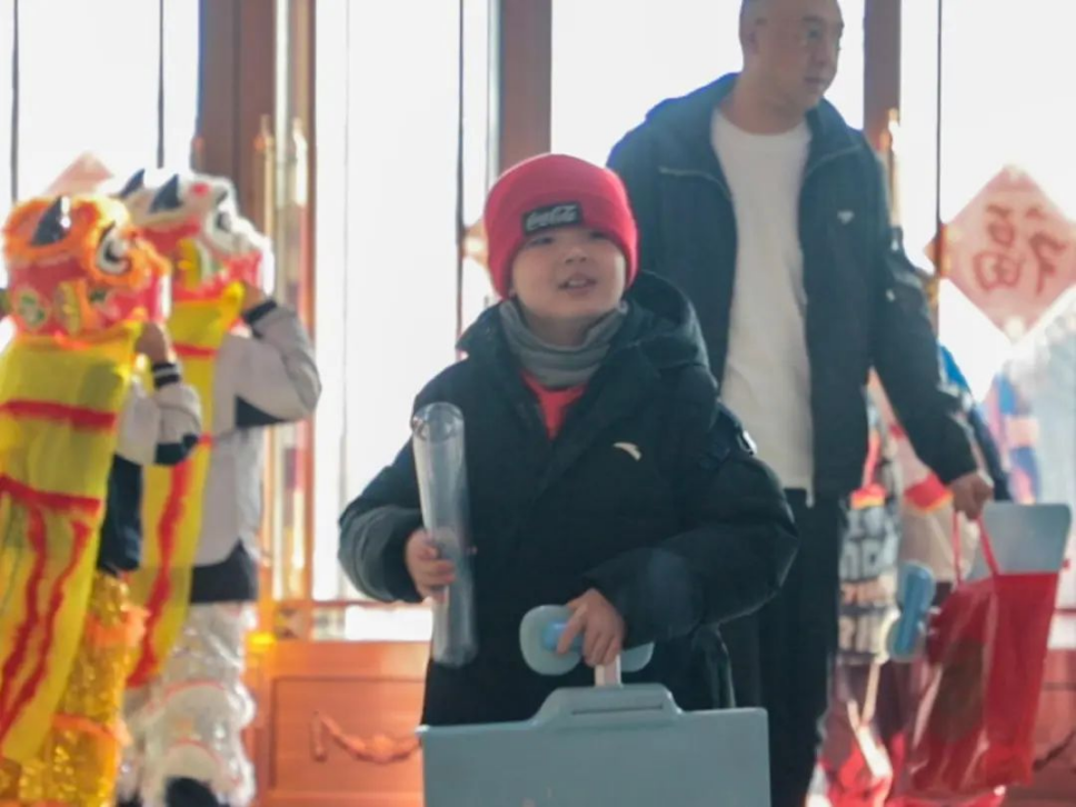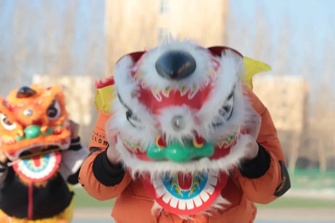 看!校门口金狮灵动起舞,它身披灿烂金鬃,时而腾跃,时而俯卧,姿态矫健。身着红衣、扎着冲天髻的“哪吒”挥舞着混天绫,灵动的身姿瞬间点燃了校园热情,象征着同学们将以哪吒般的勇气,开启新的学习征程。