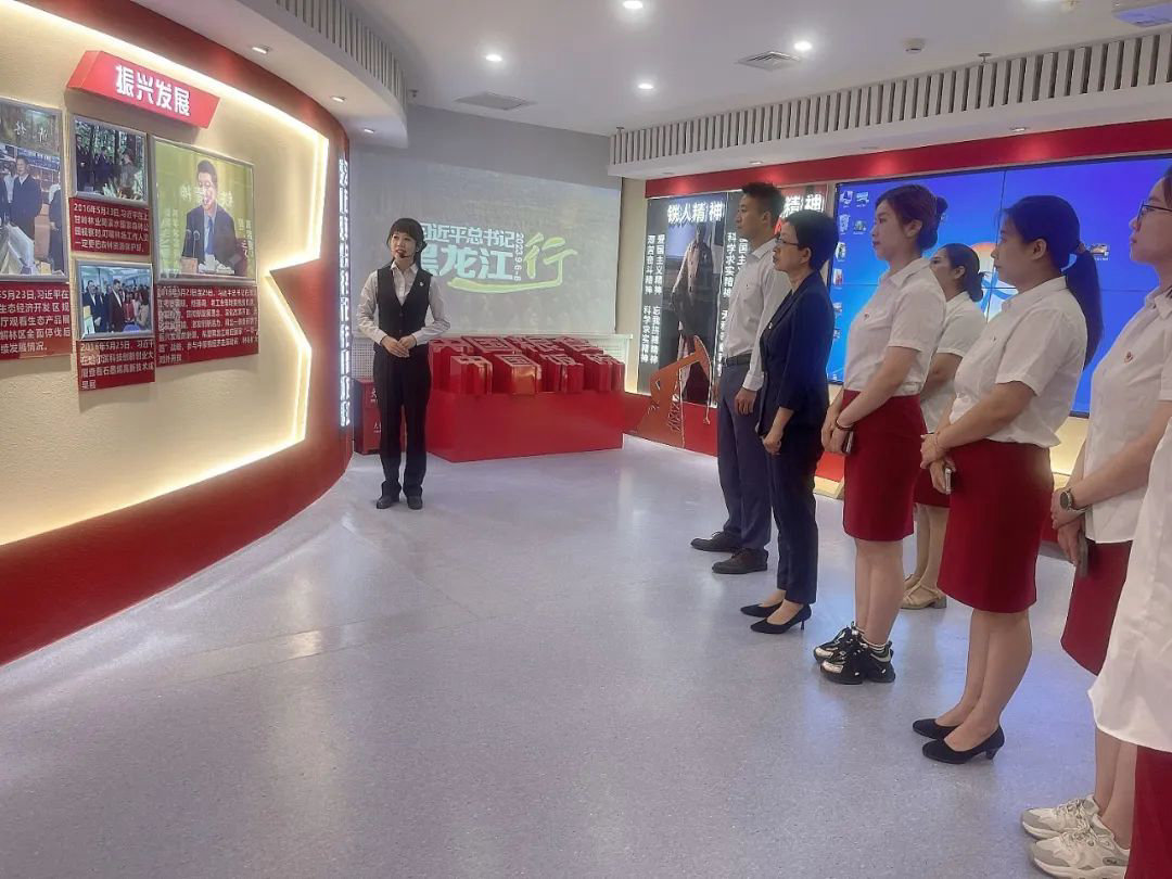 “党建馆设有展板213块、灯箱159个、珍贵照片600多张、展示资料12万余字。”党员团员们踱步于精美的展示配图与详细文字之间,在讲解员的娓娓道来中,一个个场景、一个个故事、一幅幅热烈生动的画面跃然于眼前,深刻了解了习近平总书记在黑龙江的工作期间留下的宝贵思想财富、精神财富和实践成果。