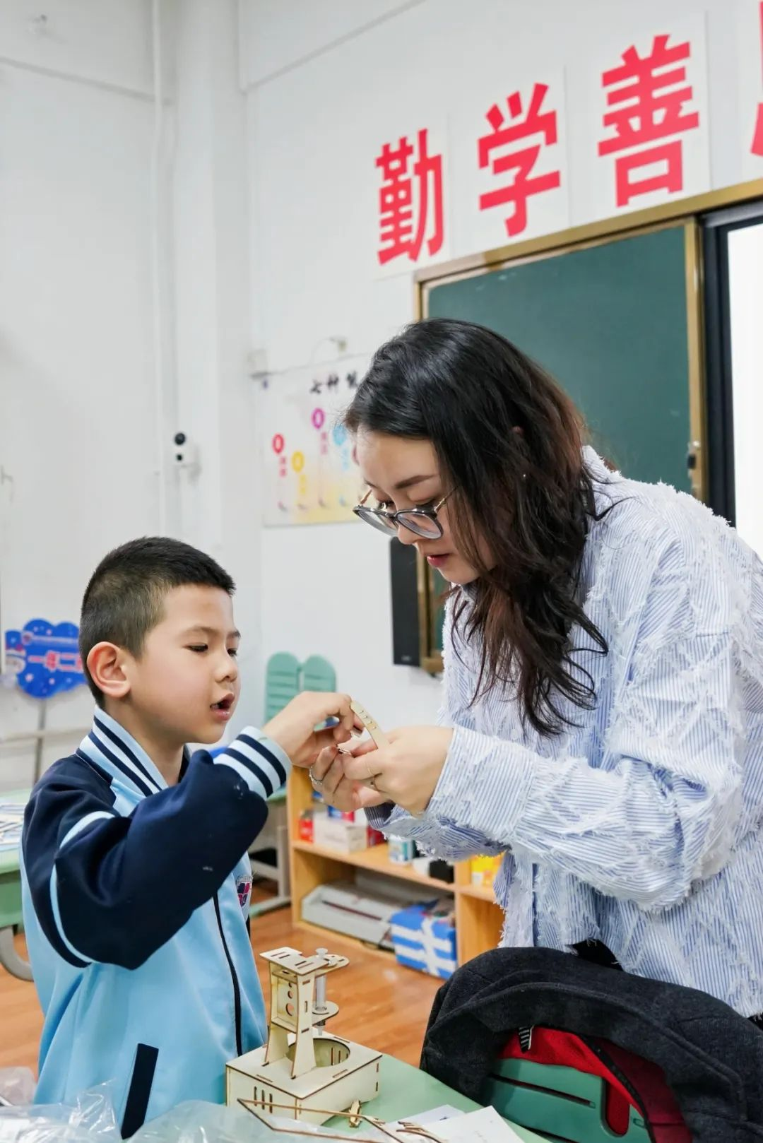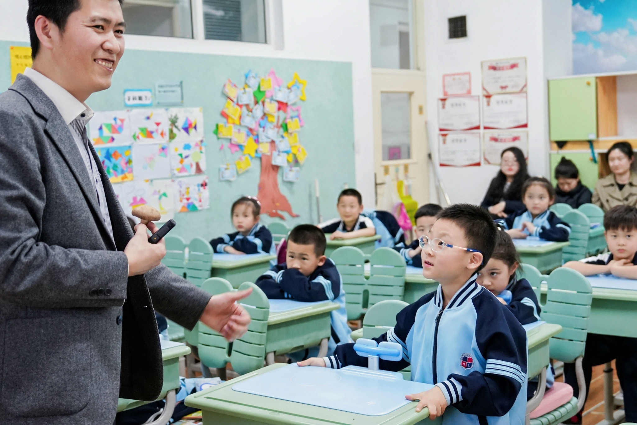 课堂上,家长讲师们各显神通,采用丰富多样的教学方式,让课堂充满活力。他们有的通过生动的故事引入知识点,有的组织有趣的小组竞赛,还有的带来实物道具进行现场演示。孩子们积极踊跃地参与互动,高高举起的小手、专注明亮的眼神,无不展现出对知识的渴望。在问答环节,孩子们思维活跃,提出各种新奇的问题,家长讲师们耐心解答,现场气氛热烈而融洽。